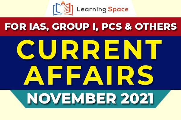 Current Affairs for the month of November 2021 for IAS, Group I, PCS & Others.