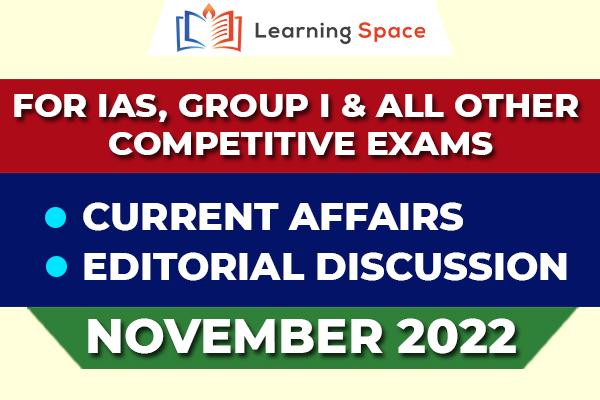Current Affairs & Editorial Discussions for the month of November 2022 for IAS, Group I, PCS & Others.